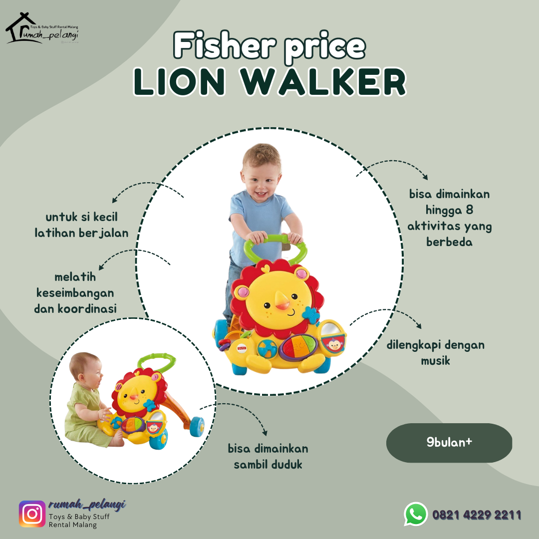 - Desain walker yang berbentuk singa ini menyediakan berbagai pilihan mainan dan hiburan yang menyenangkan