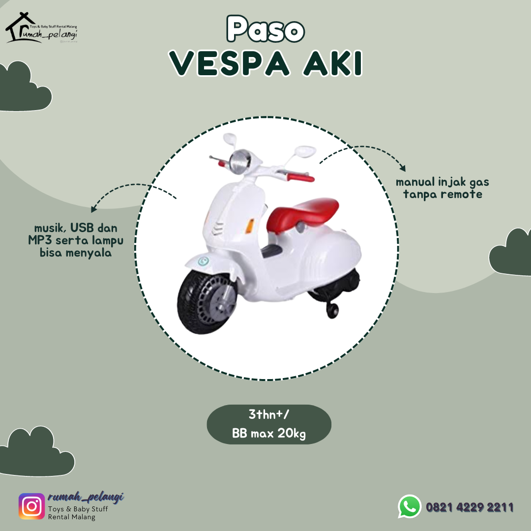 Motor aki dengan model vespa kekinian, manual injak gas tanpa remot.