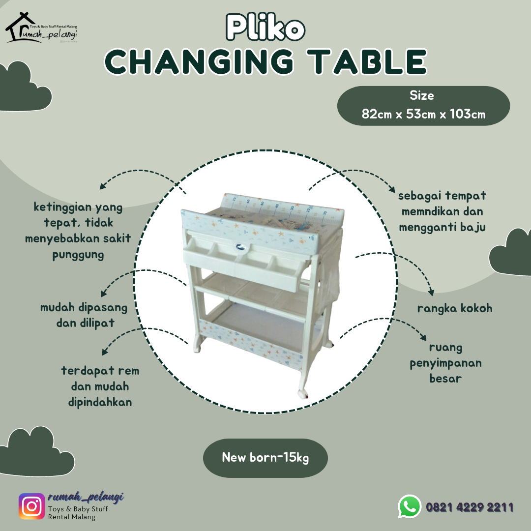 - Bak pada bagian atas dapat diubah sebagai matras untuk ganti popok yang dilengkapi dengan seat belt